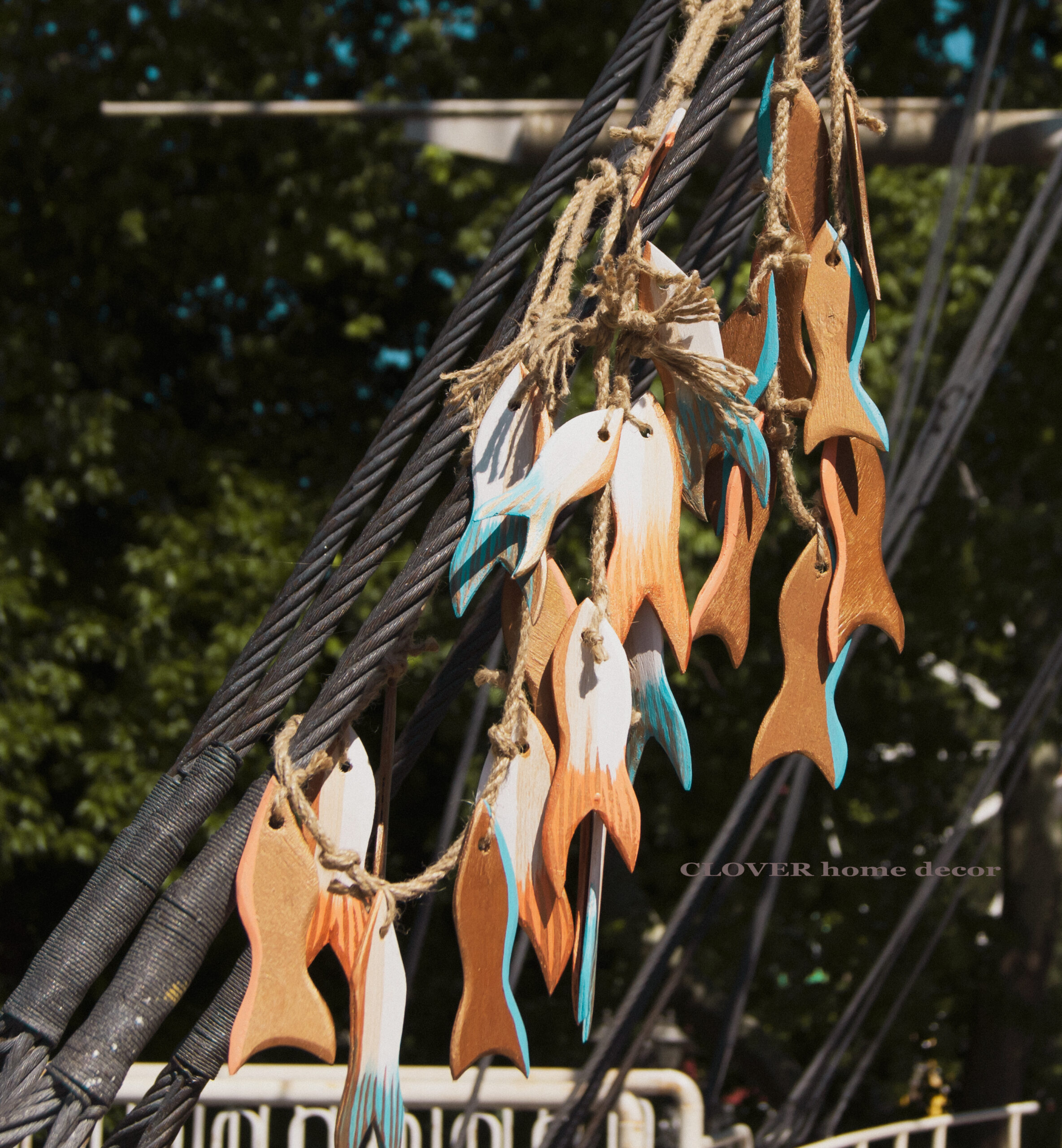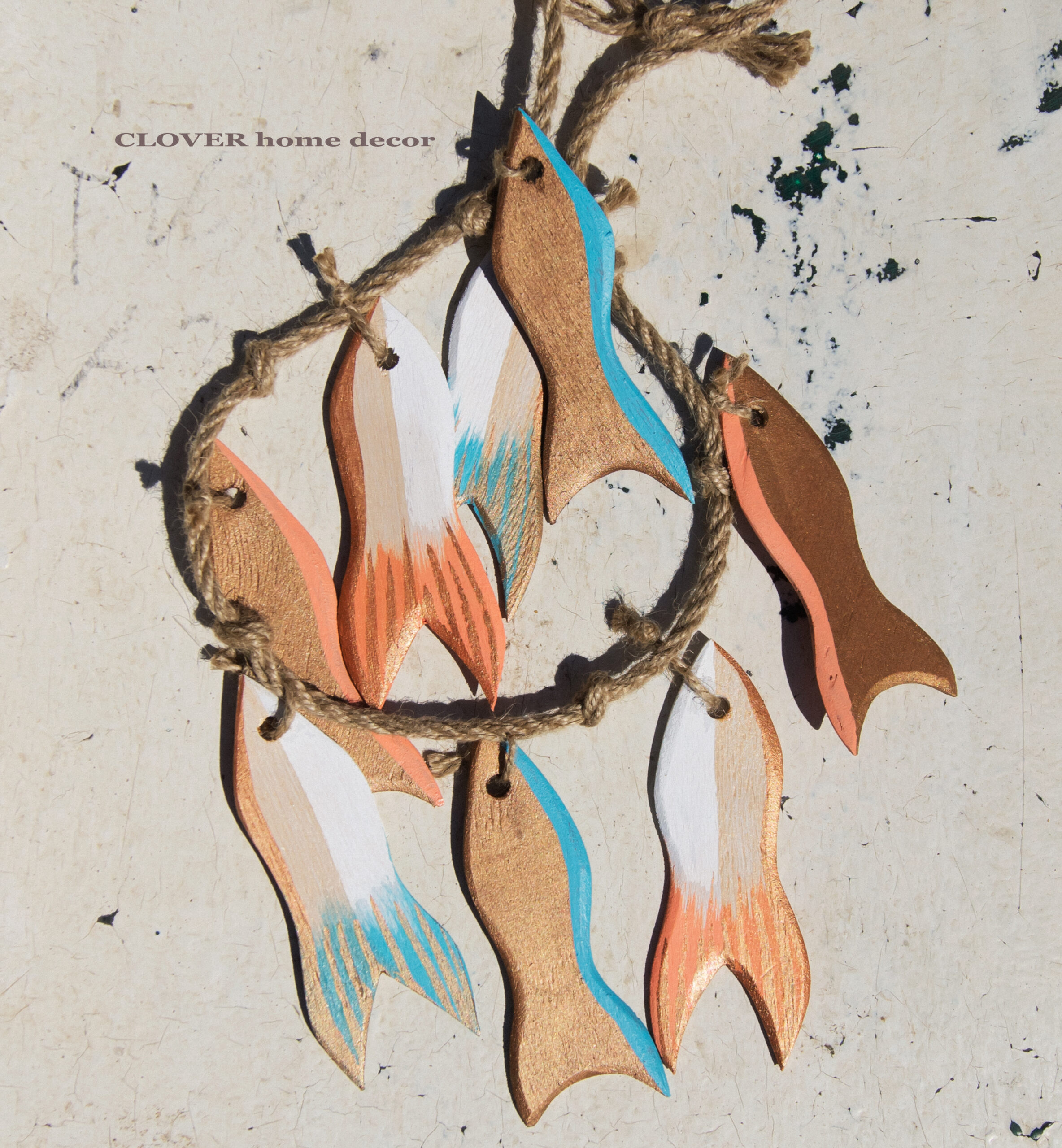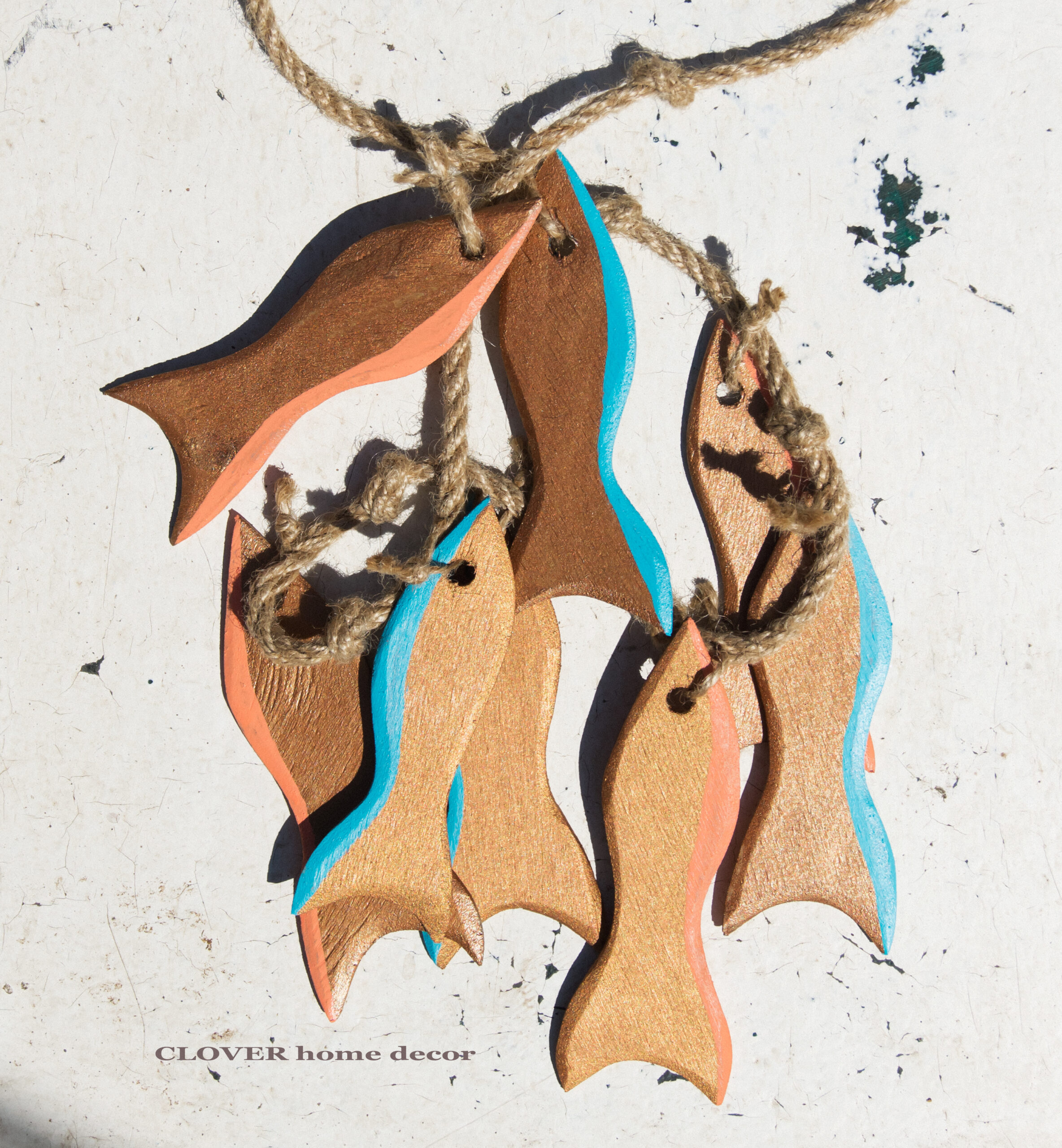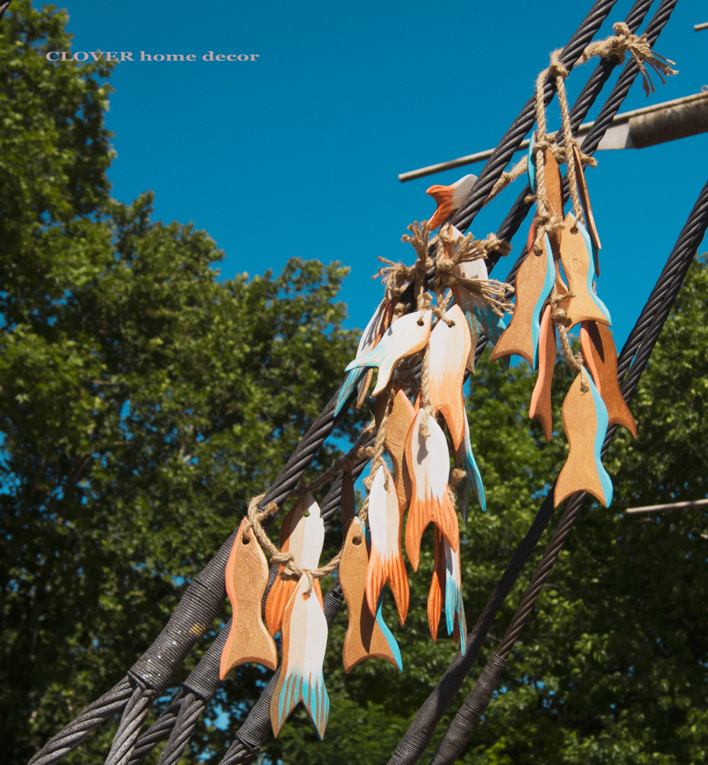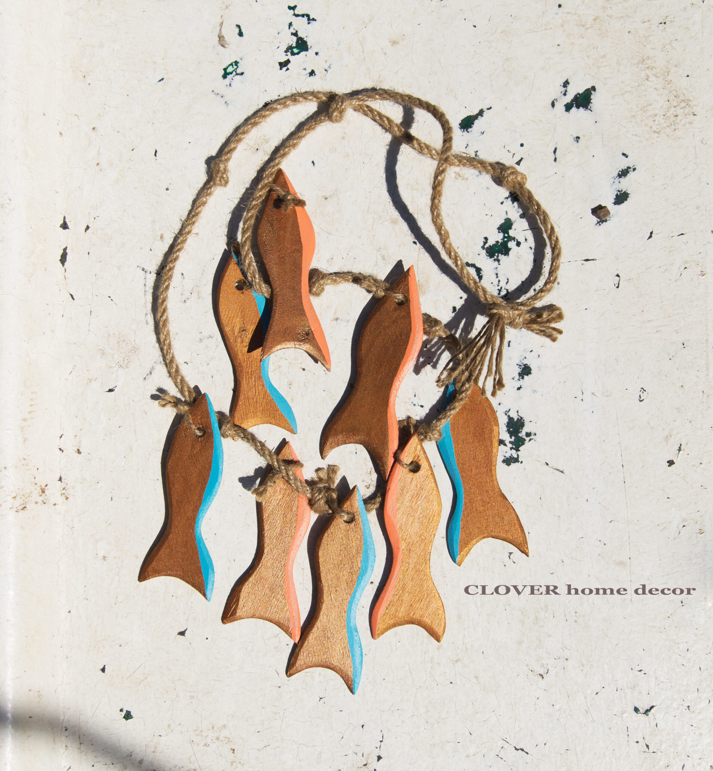 Декоративна низка дерев’яних рибок ручної роботи. У почіпці 8 дерев’яних рибок 12х4 см кожна. Довжина низки – 120 см.