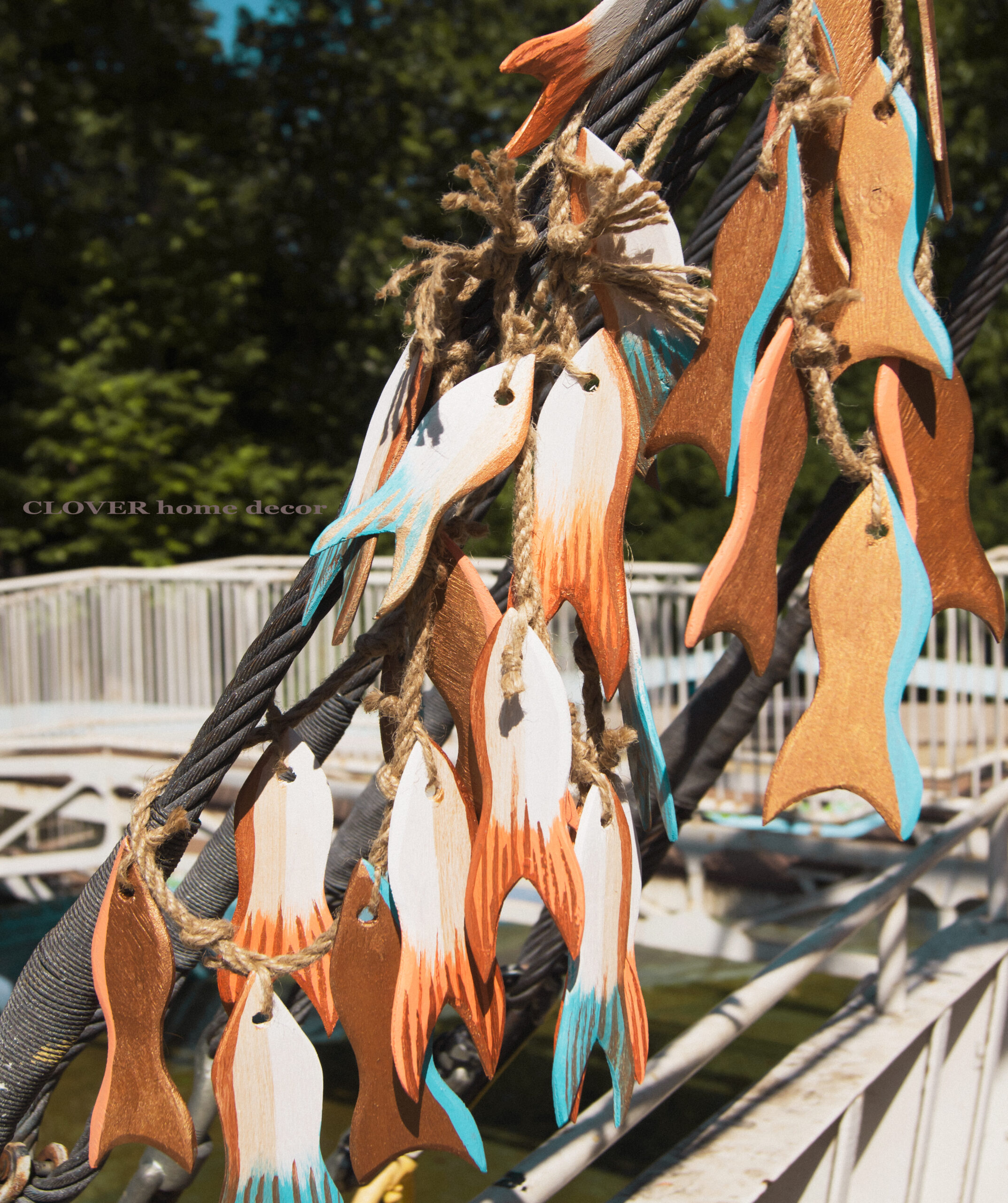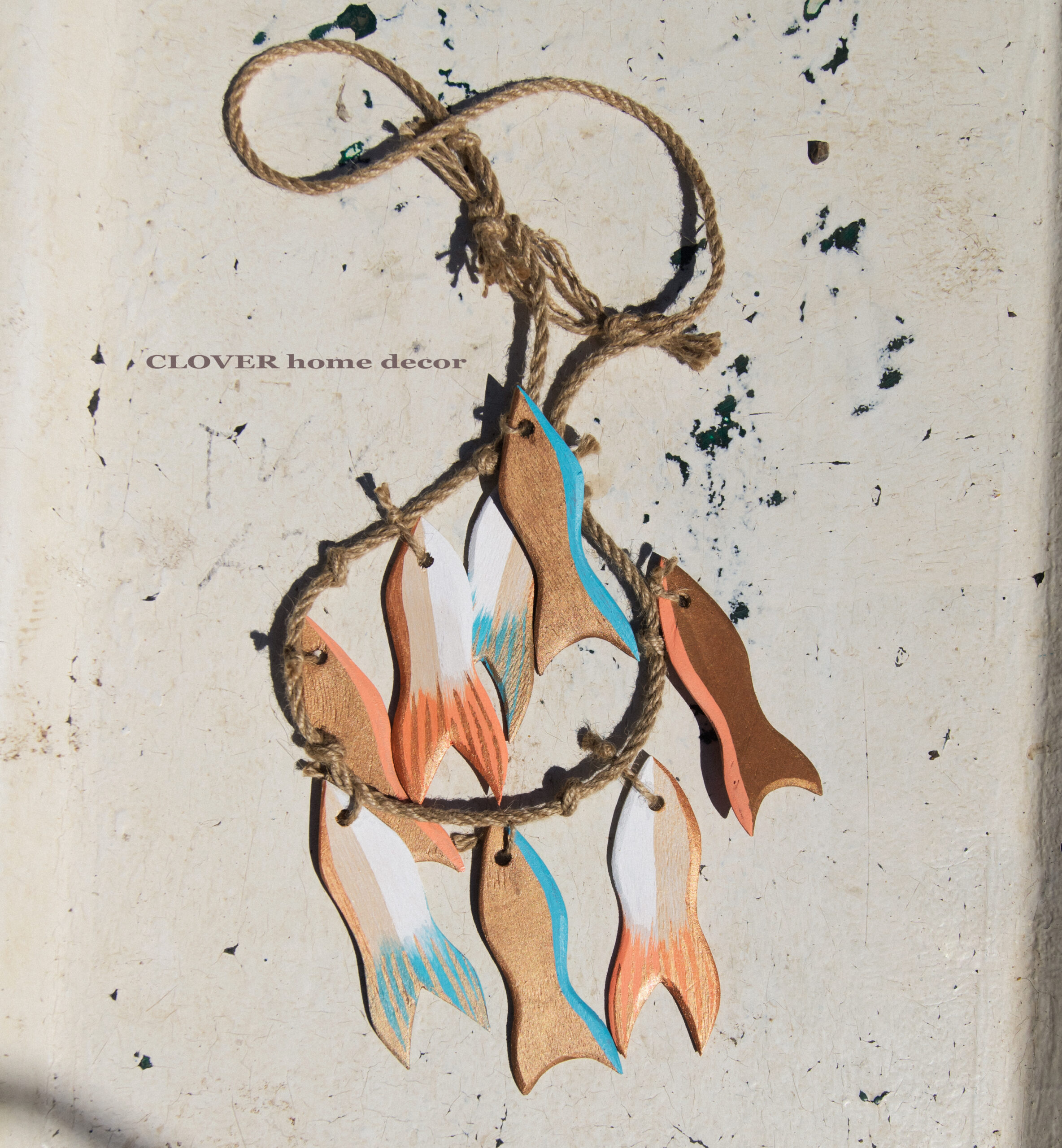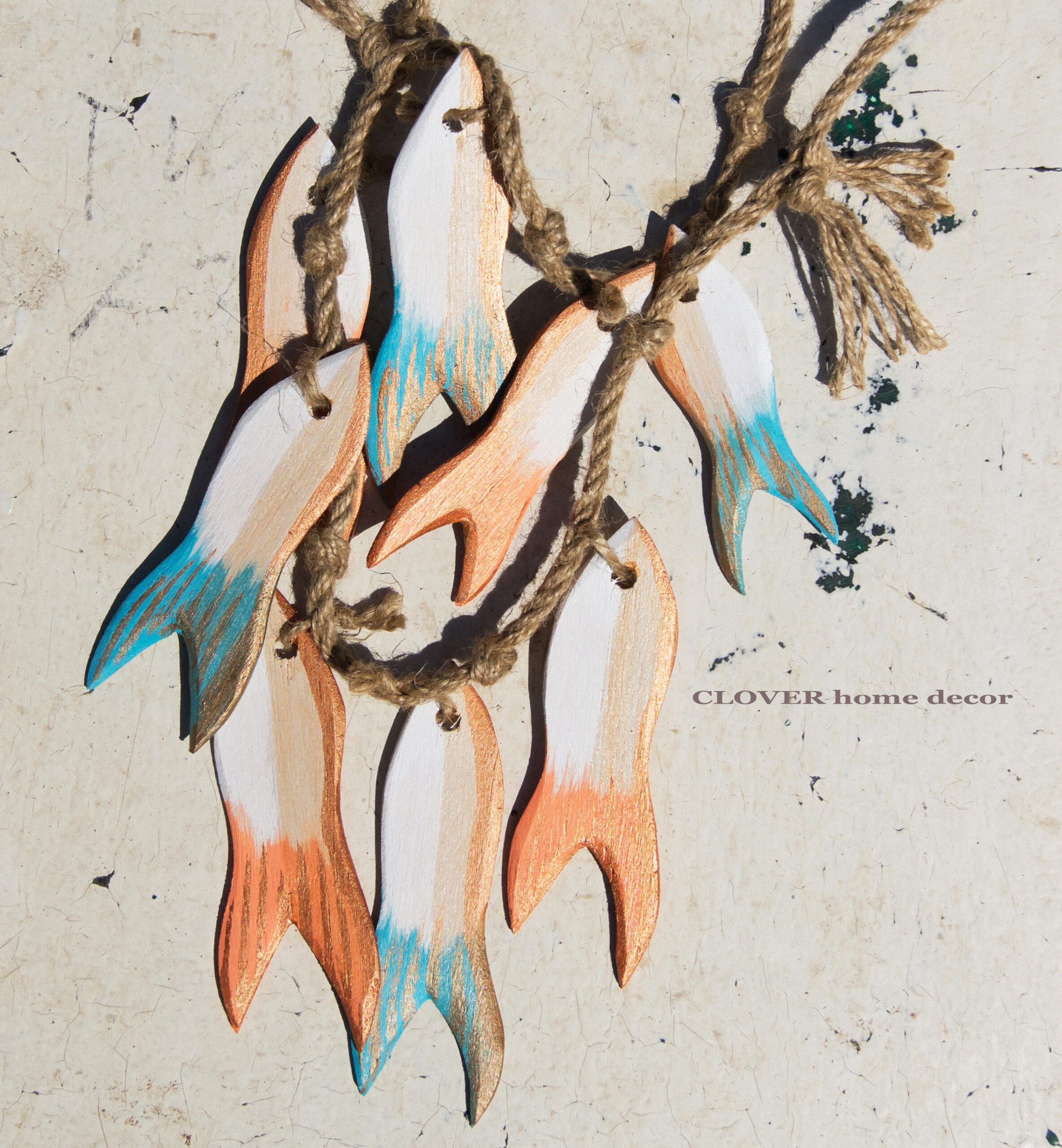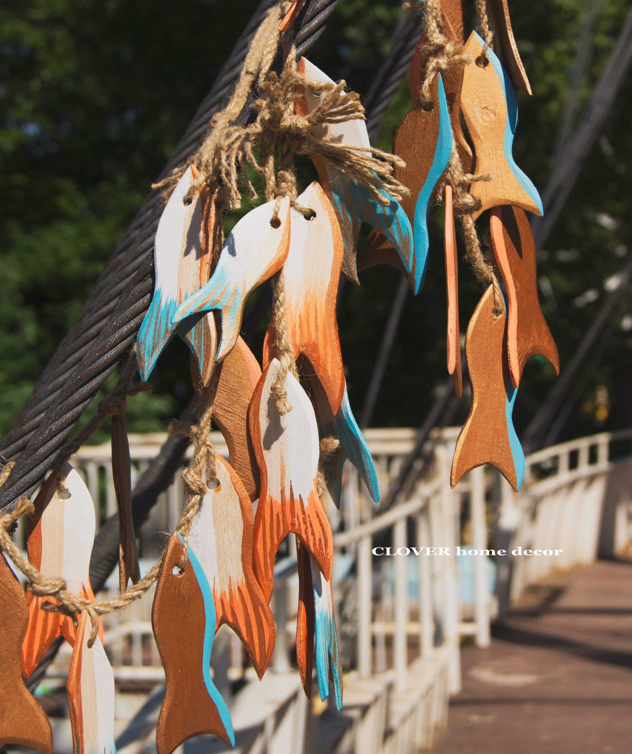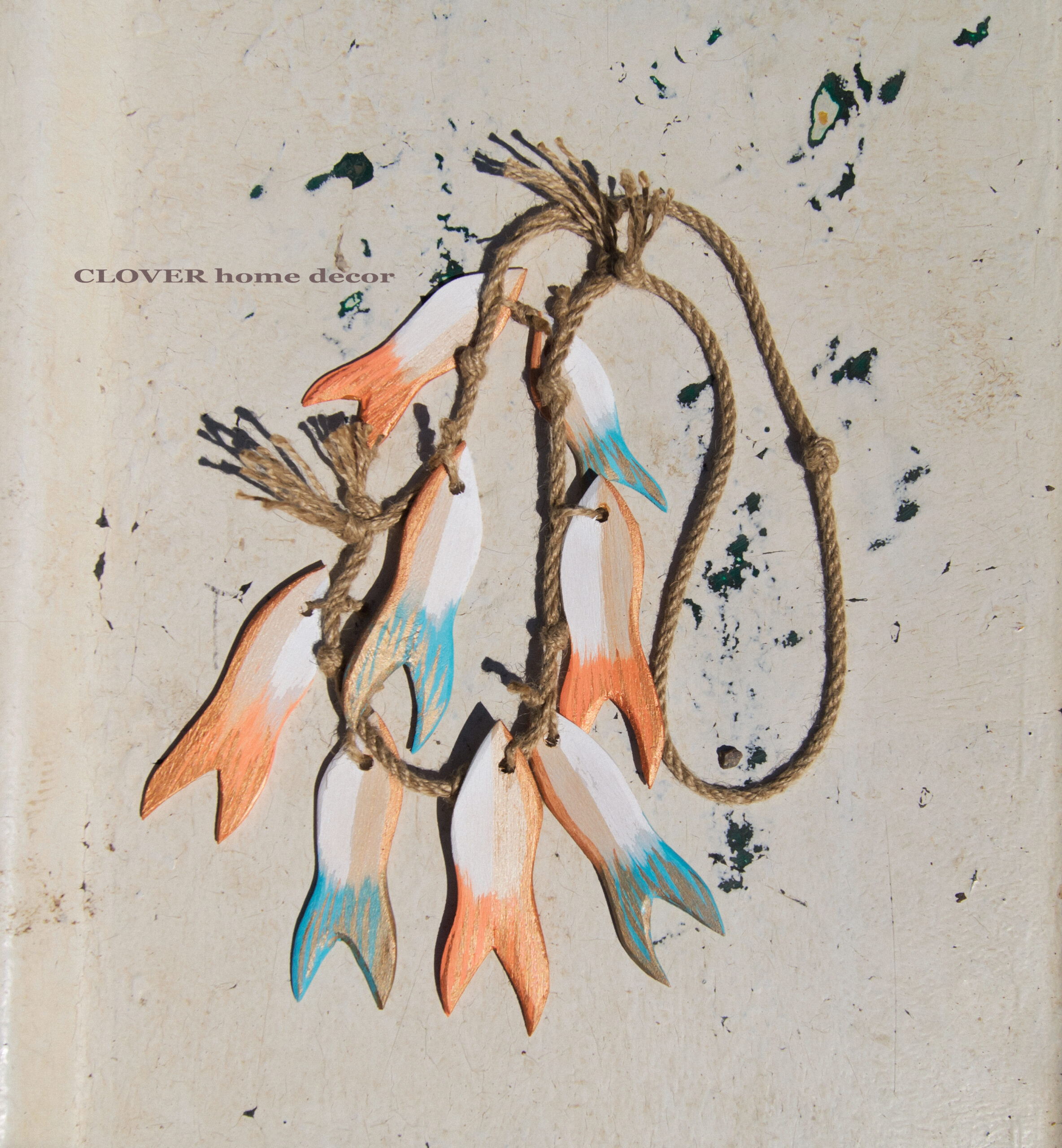 Декоративна низка дерев’яних рибок ручної роботи. У почіпці 8 дерев’яних рибок 12х4 см кожна. Довжина низки – 120 см.