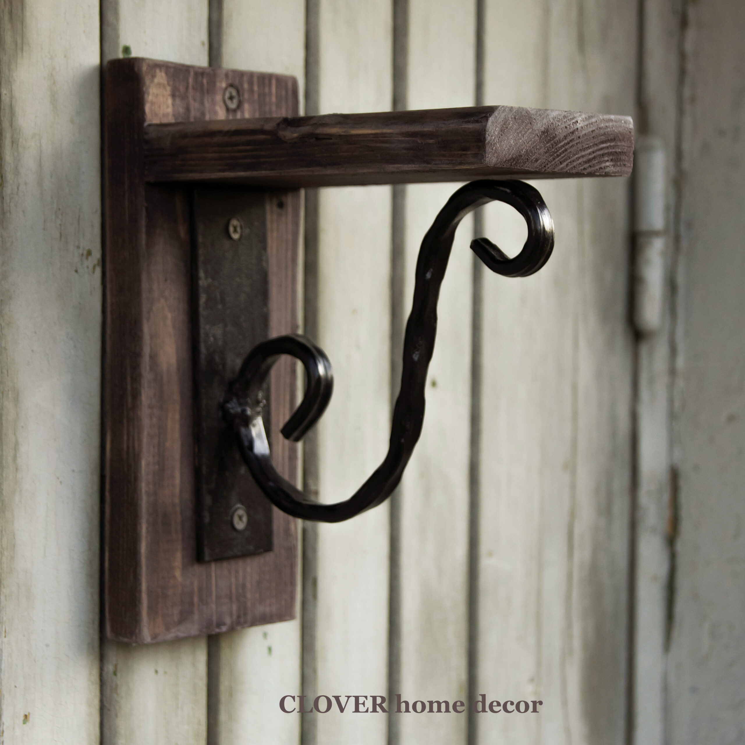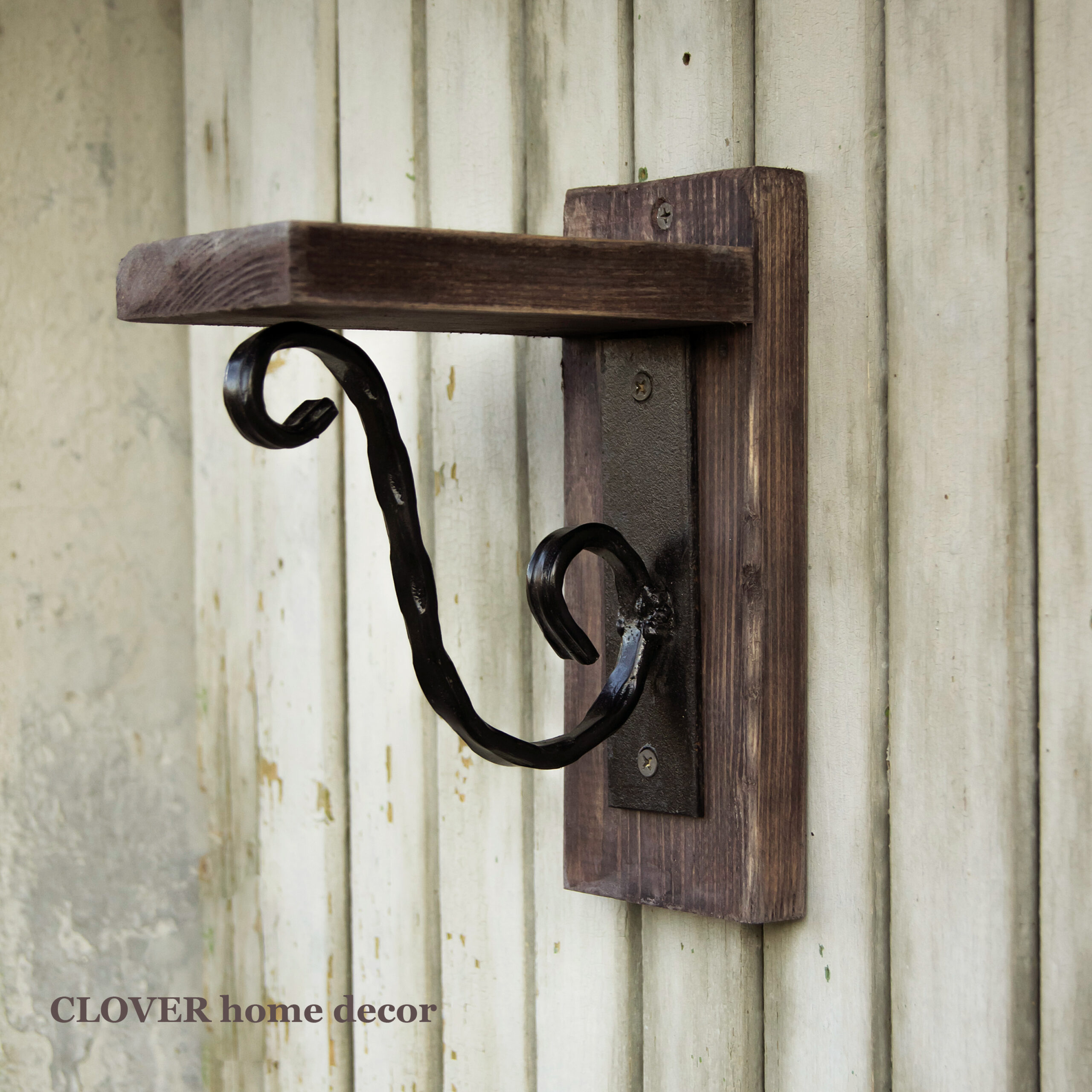 Дерев’яна полиця-консоль з кованими елементами. Розміри виробу 21×17,5×8,5 см.