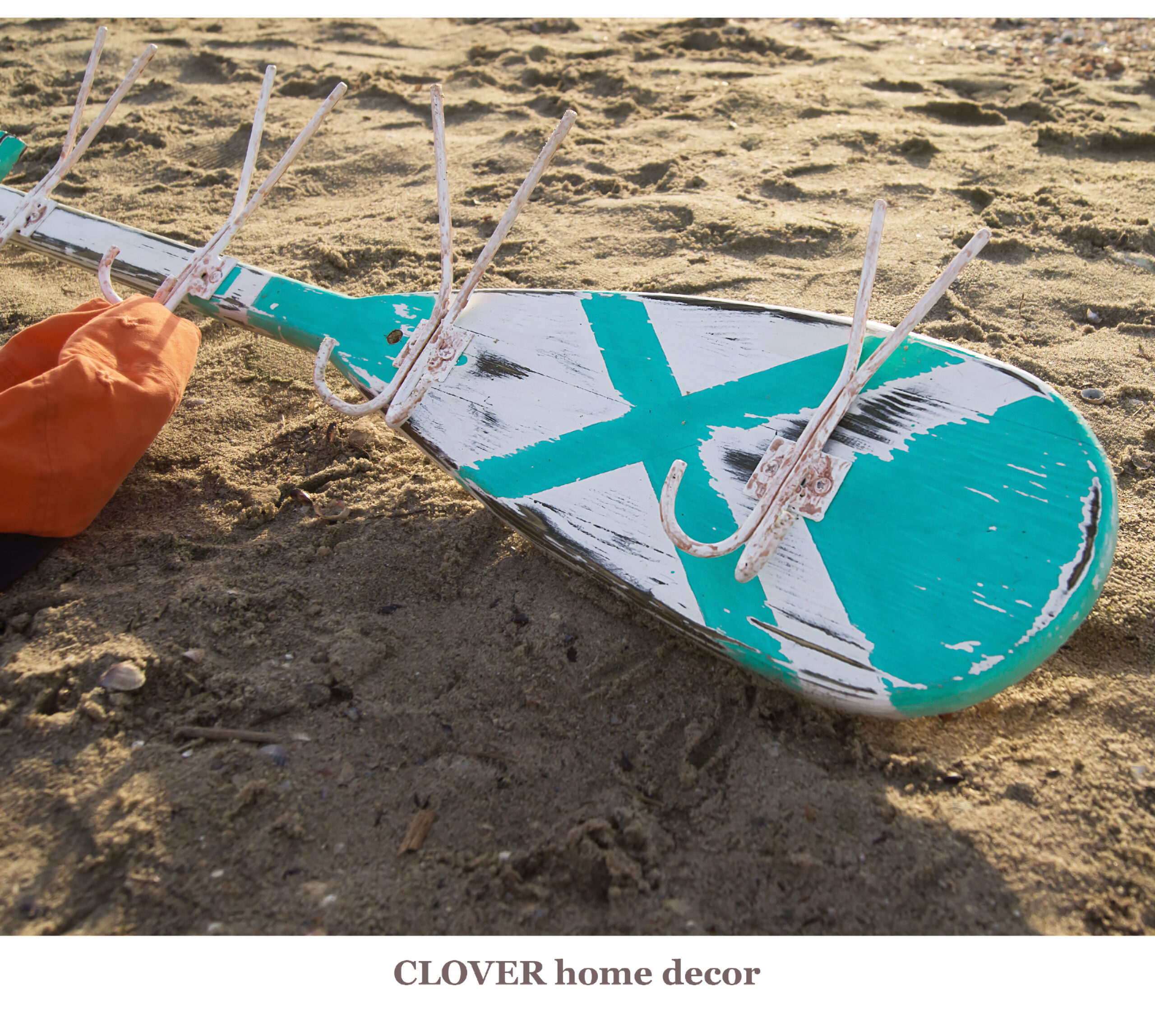 Дерев’яна вішалка для одягу ручної роботи, виконана у вигляді весла та декорована патиною.