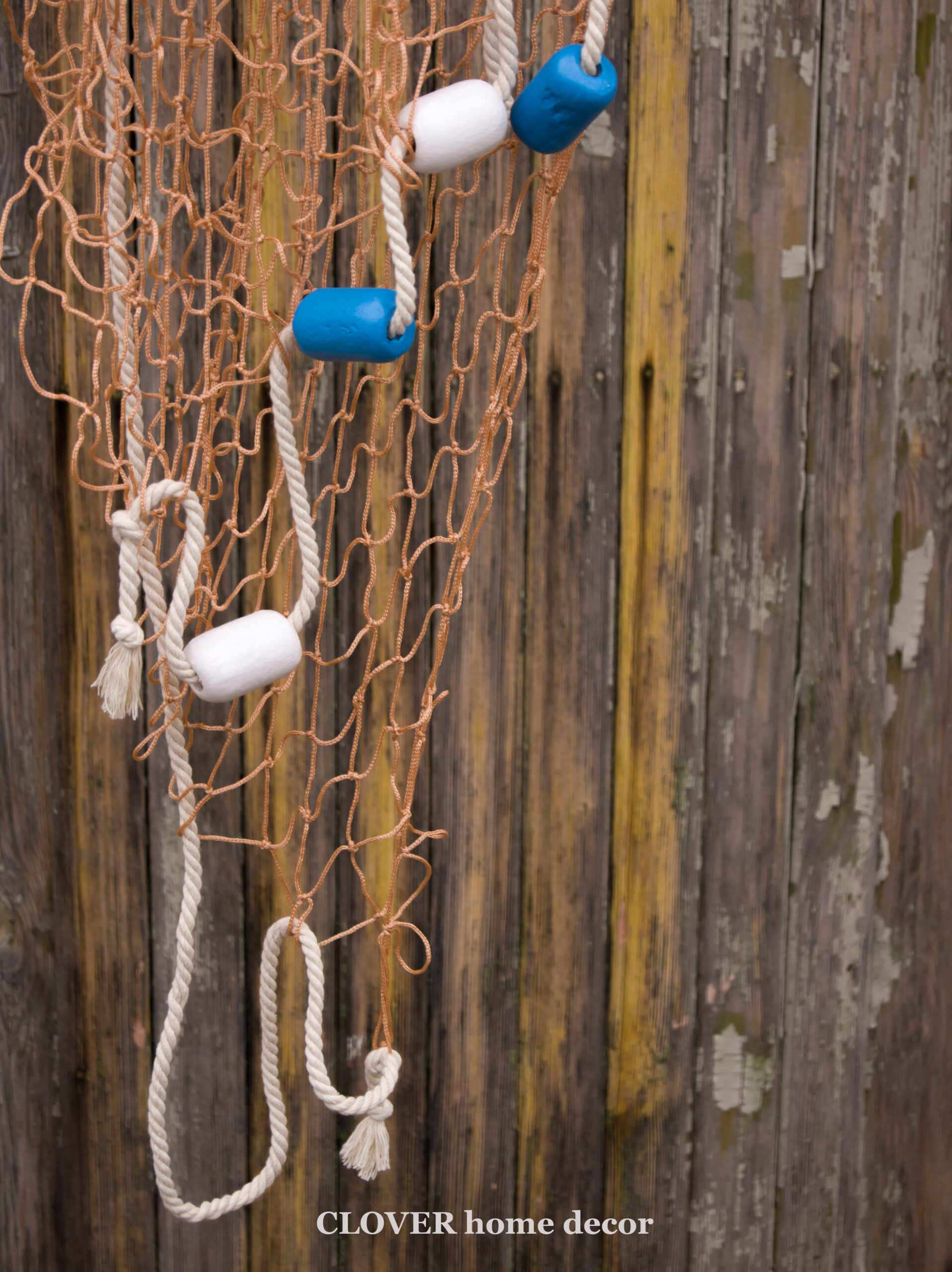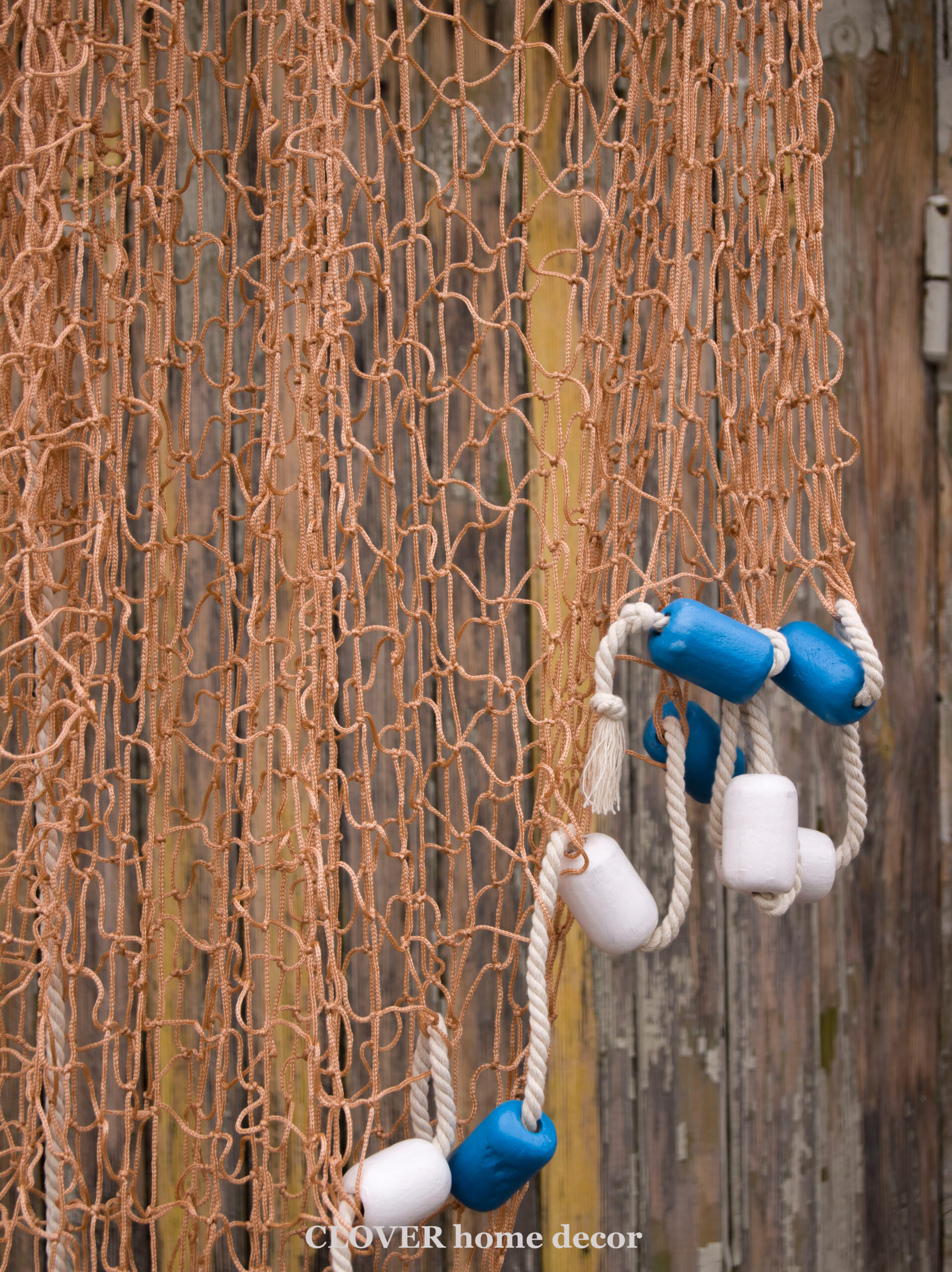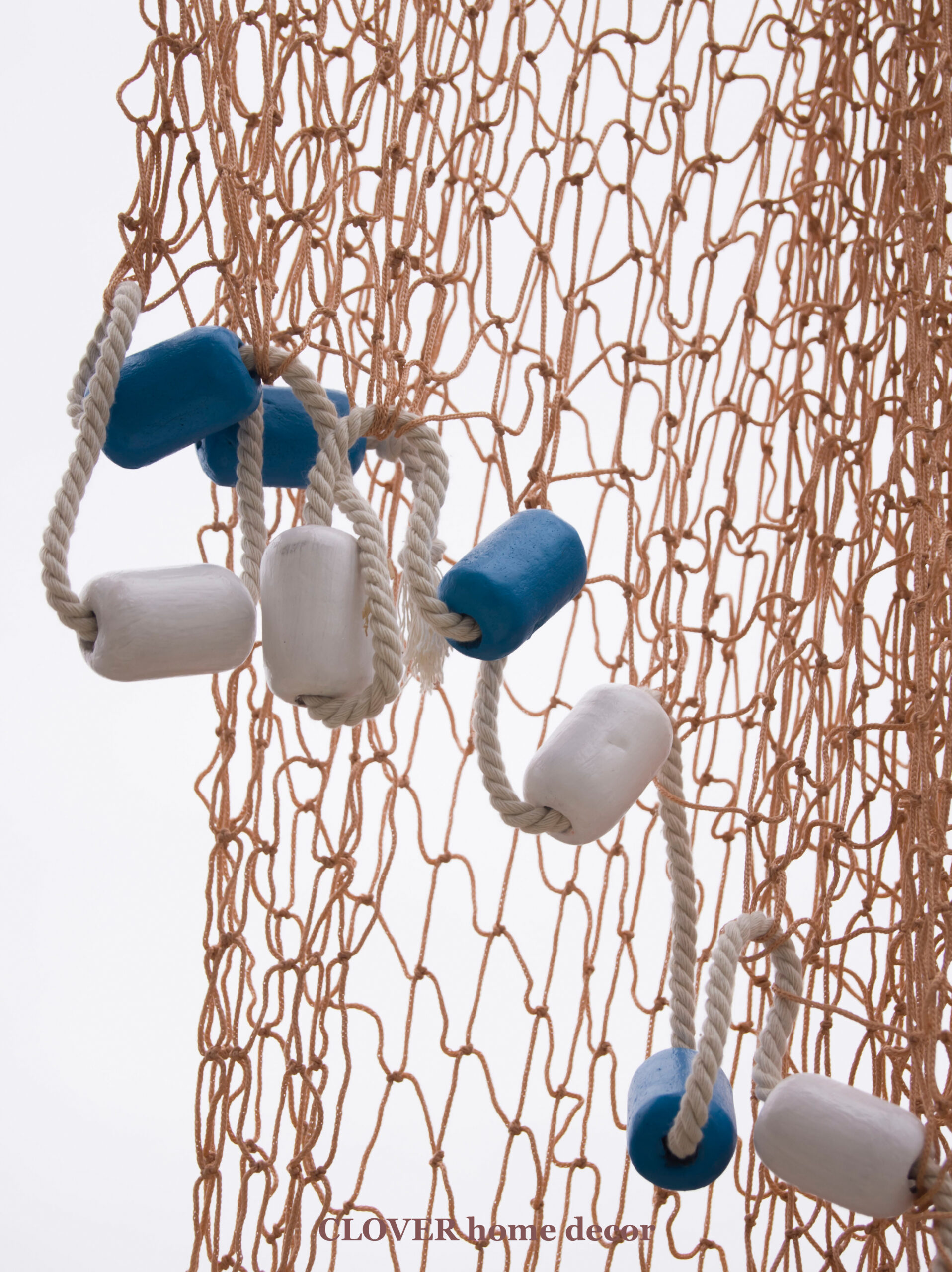 Декоративна рибальська сітка ручної роботи декорована поплавцями і мотузкою.