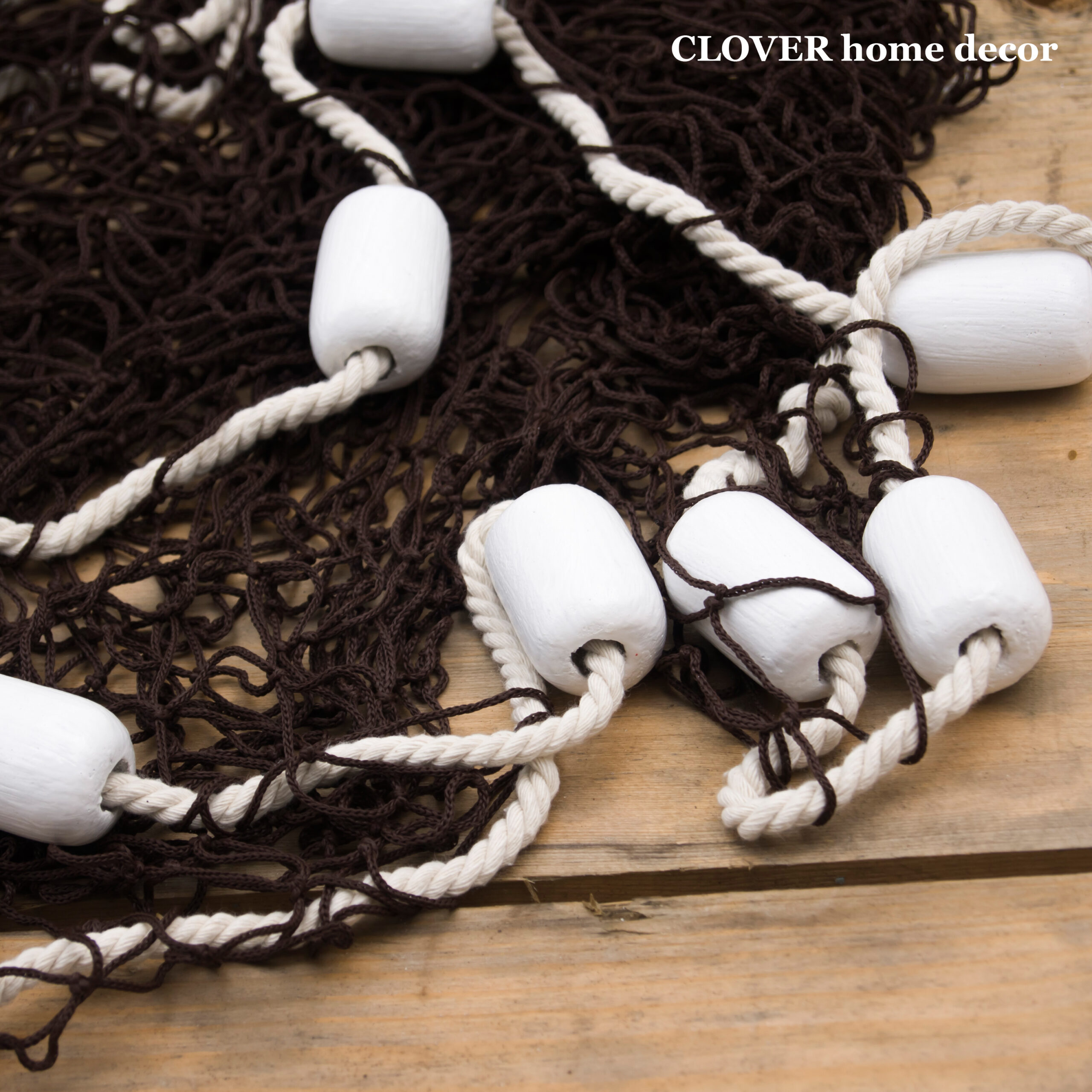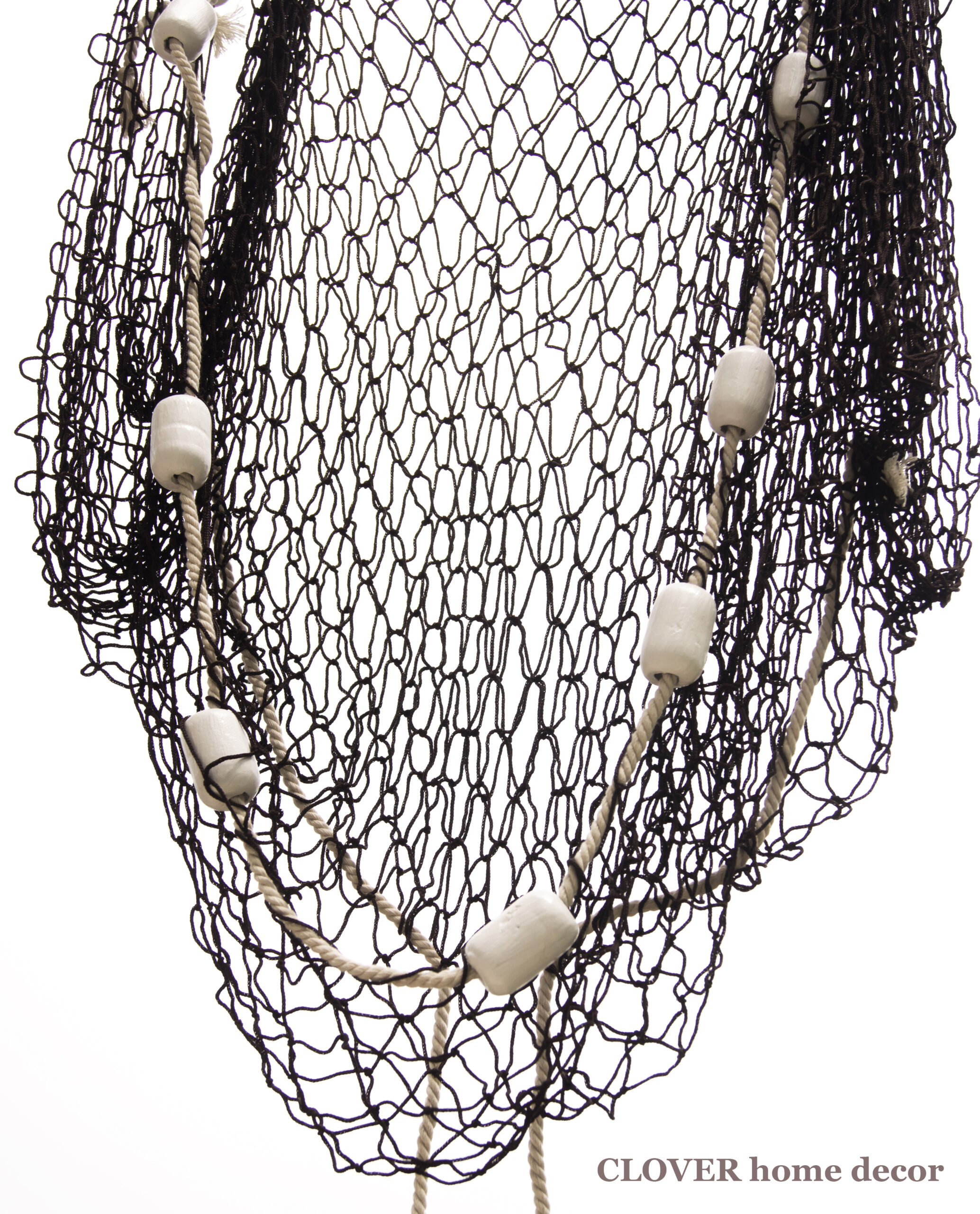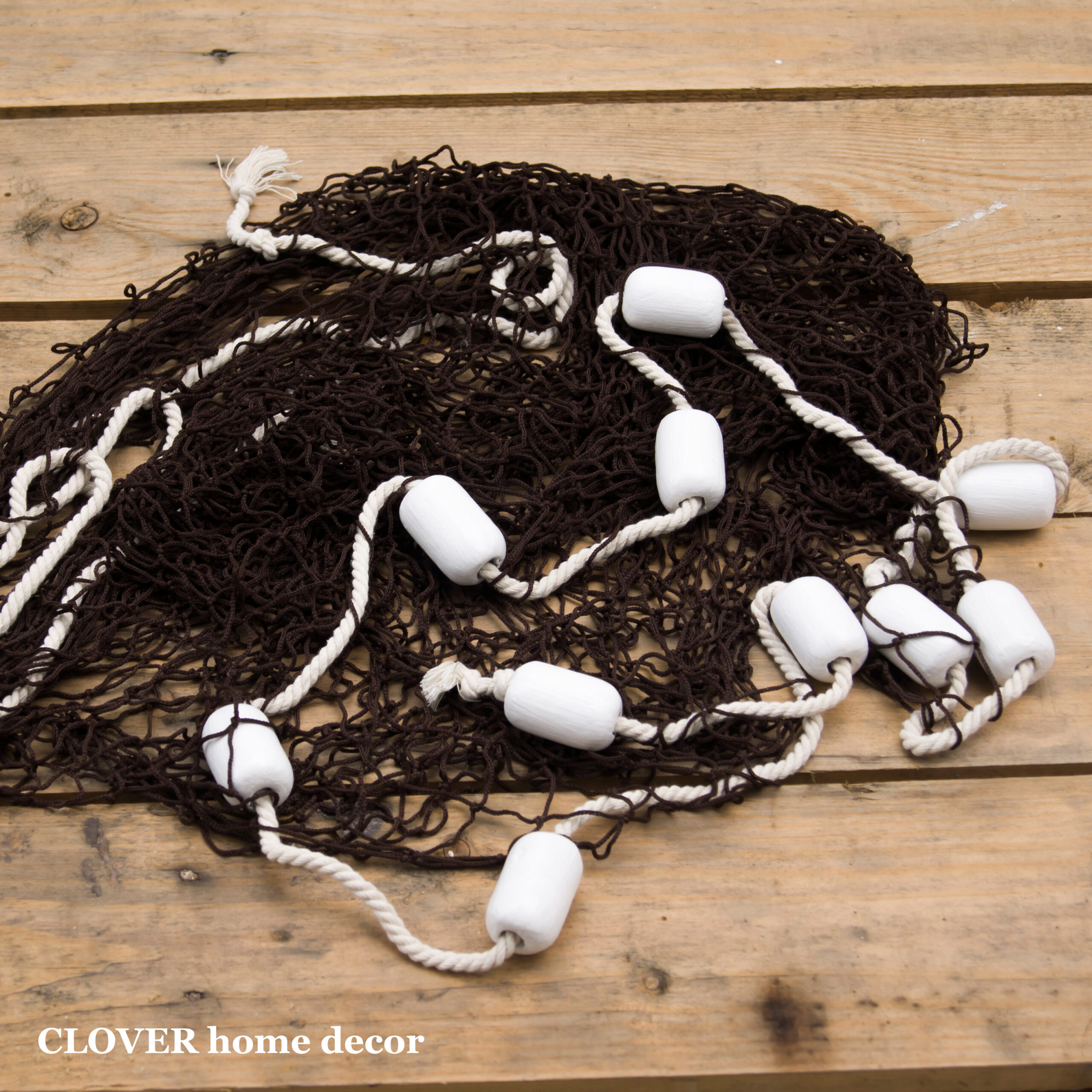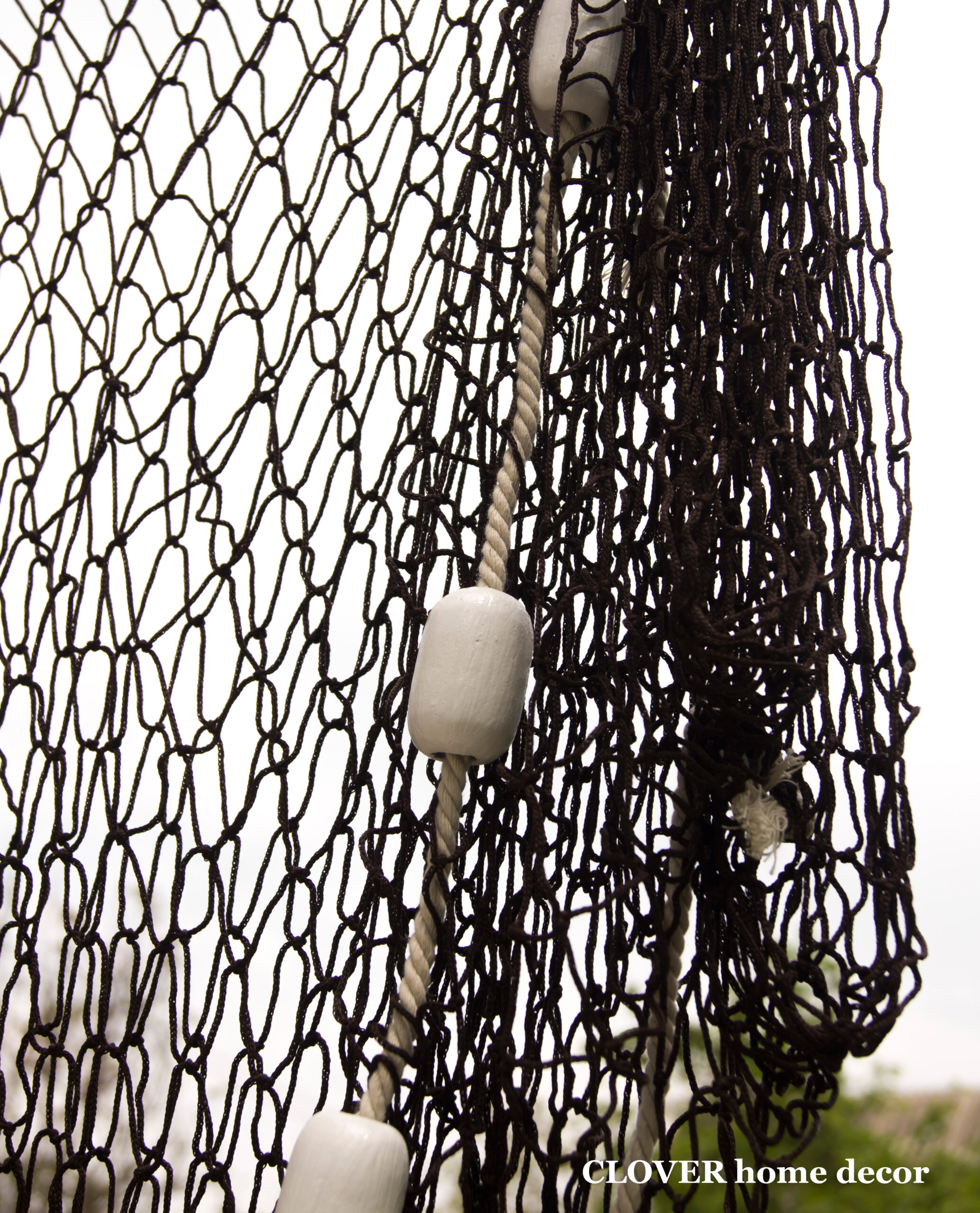 Декоративна рибальська сітка ручної роботи декорована поплавцями і мотузкою.