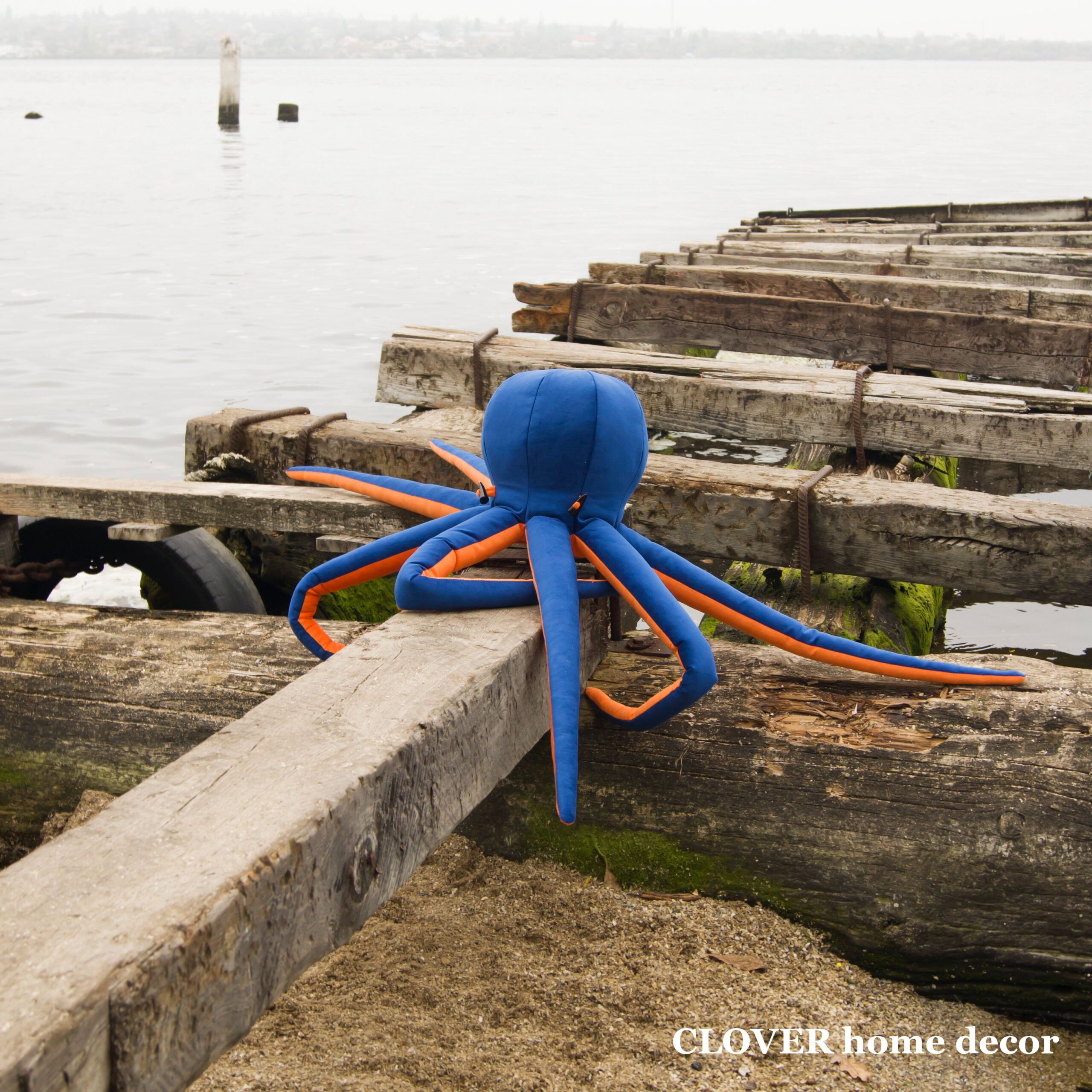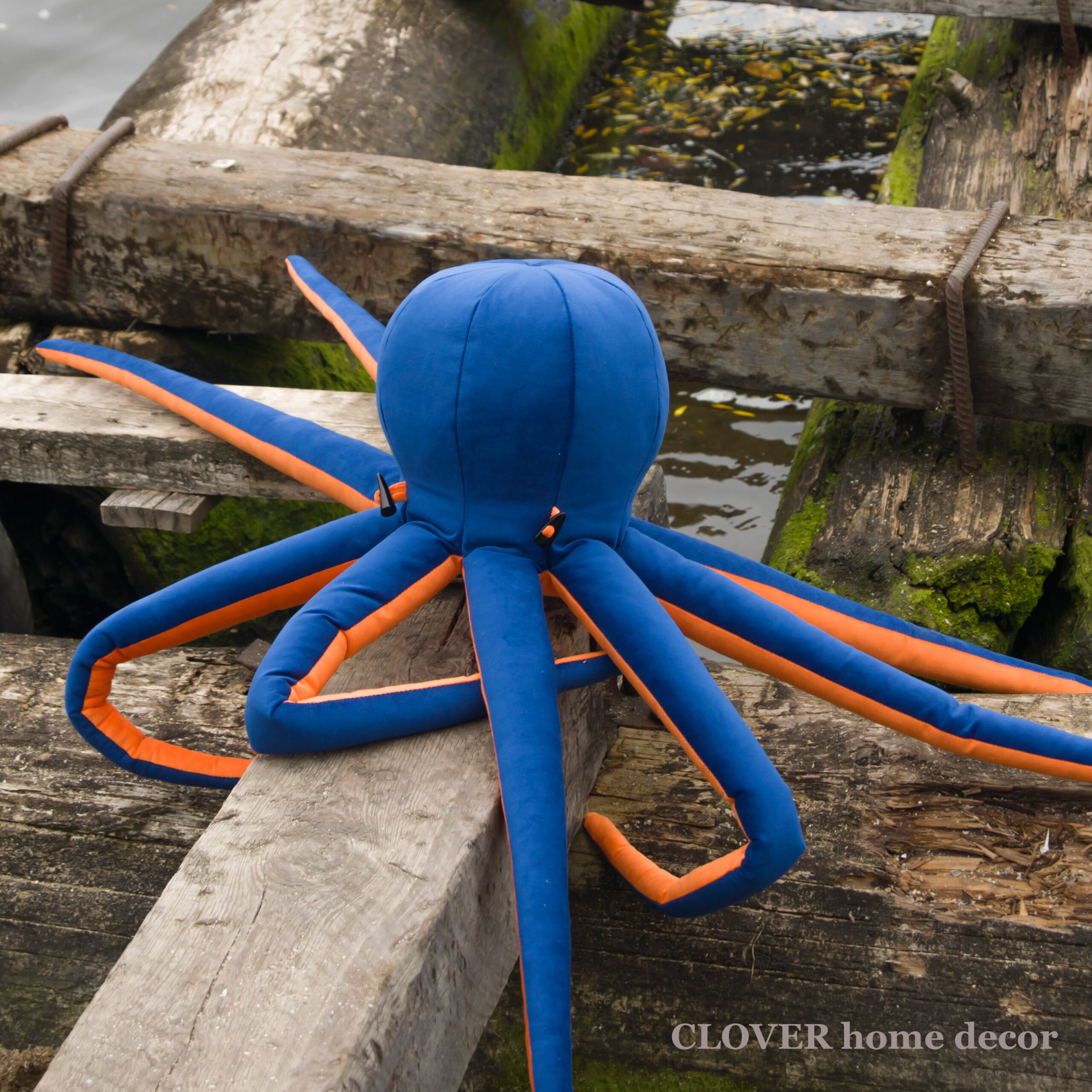 Розкинувши щупальця на дивані, цей морський мешканець нікого не залишить байдужим! Загальна довжина – 90 см а діаметр голови – 30 см. Виготовлений з велюру. Наповнювач – синтепух. Можна «делікатно» прати при температурі 30 градусів.