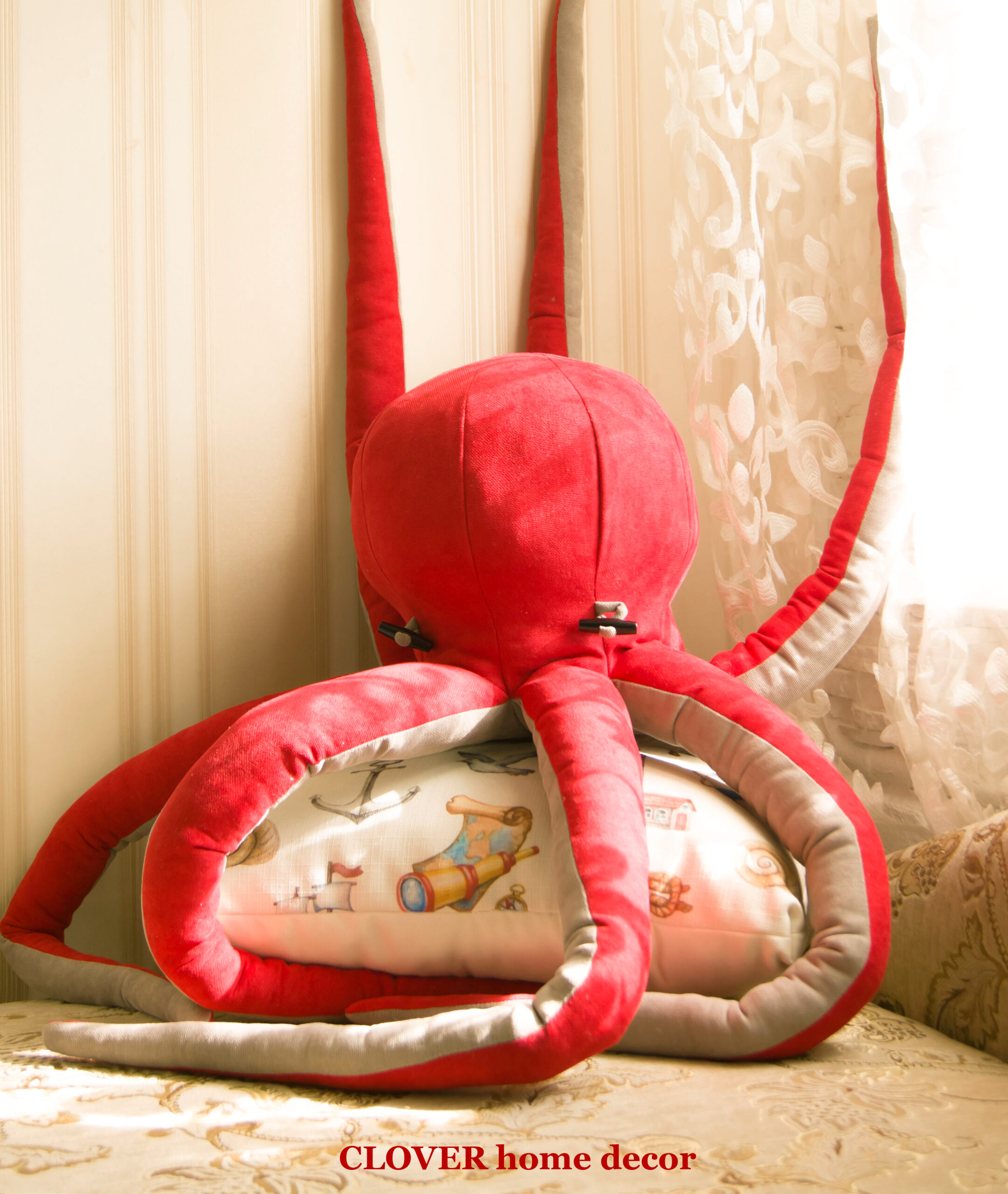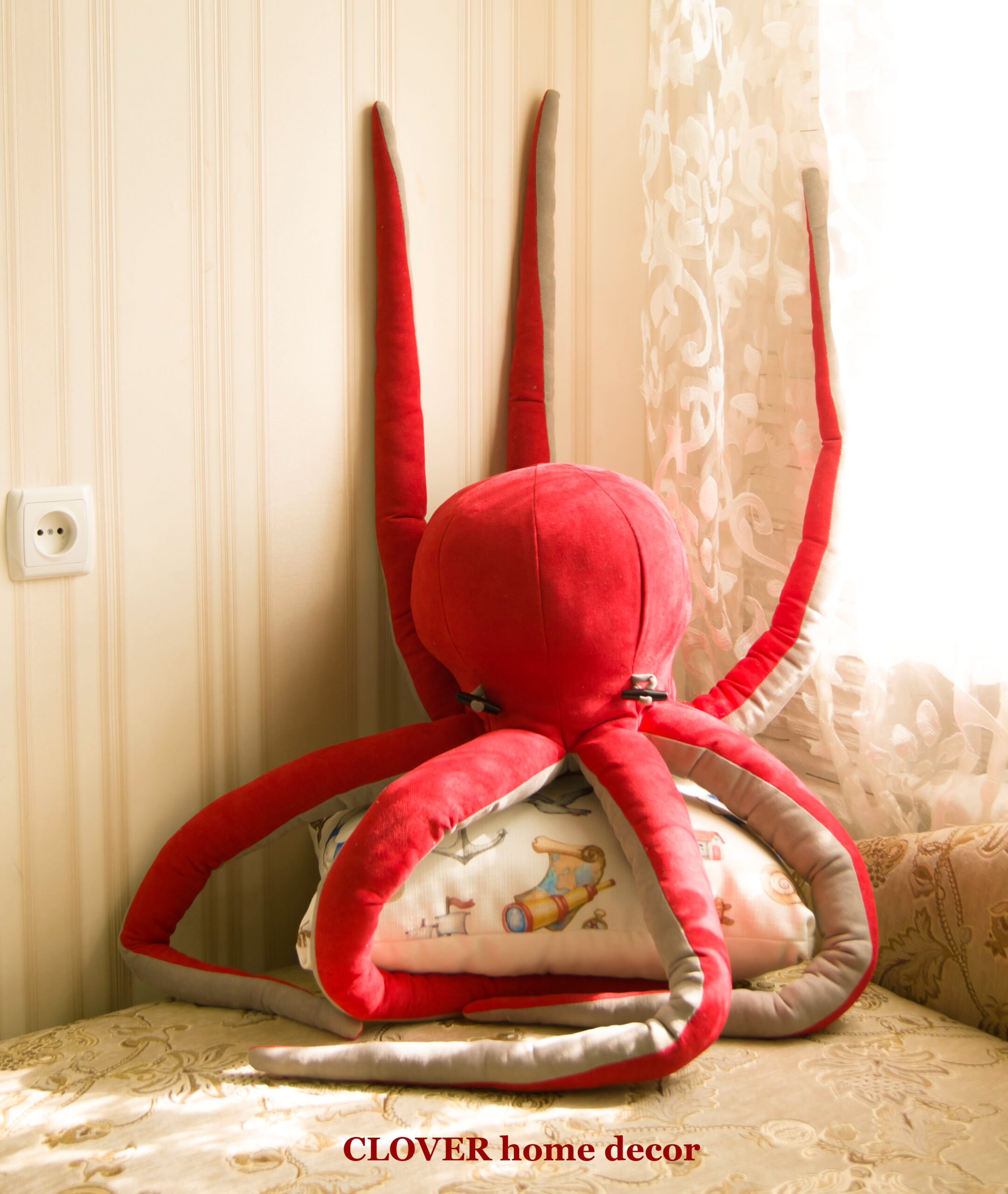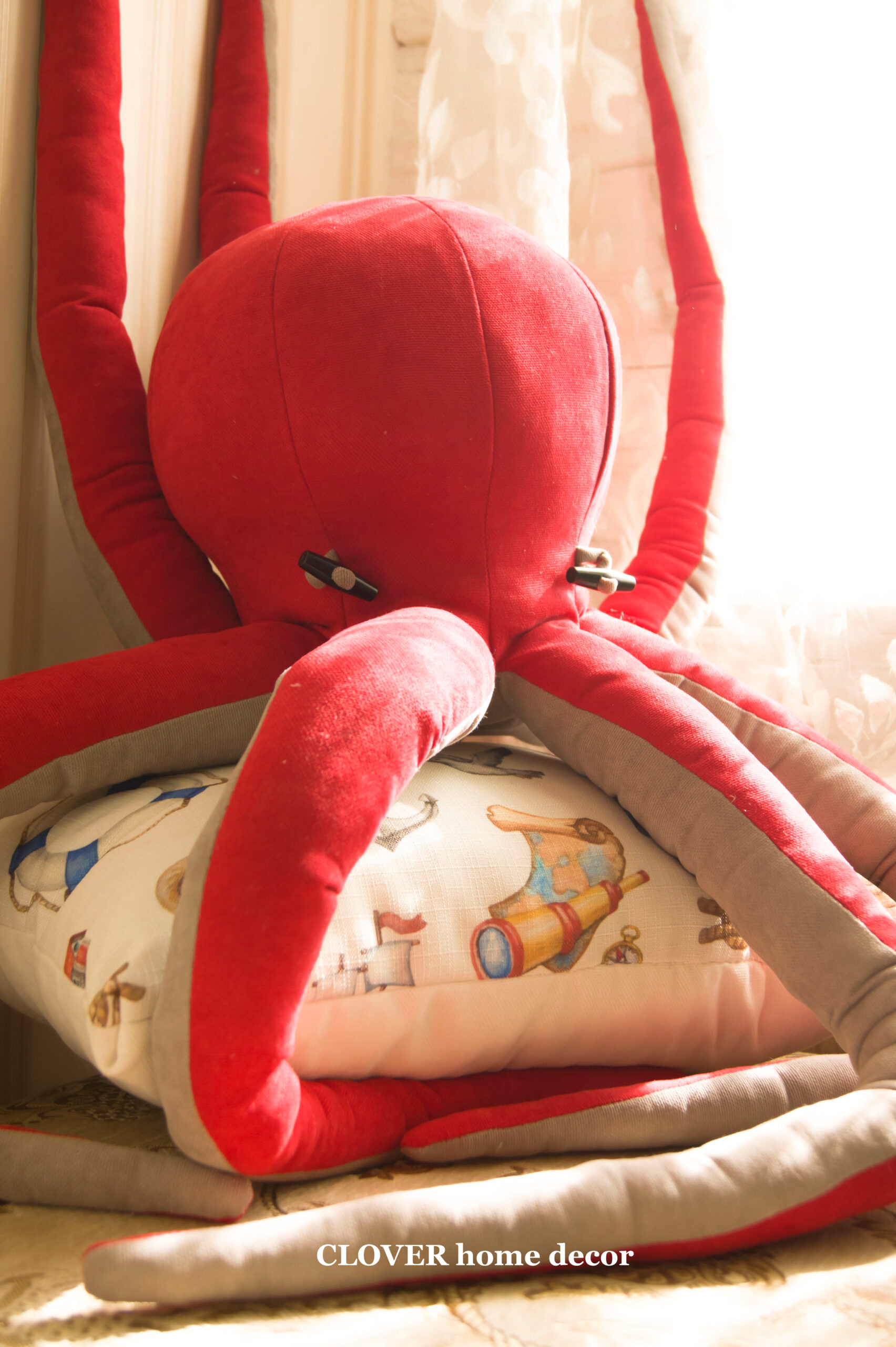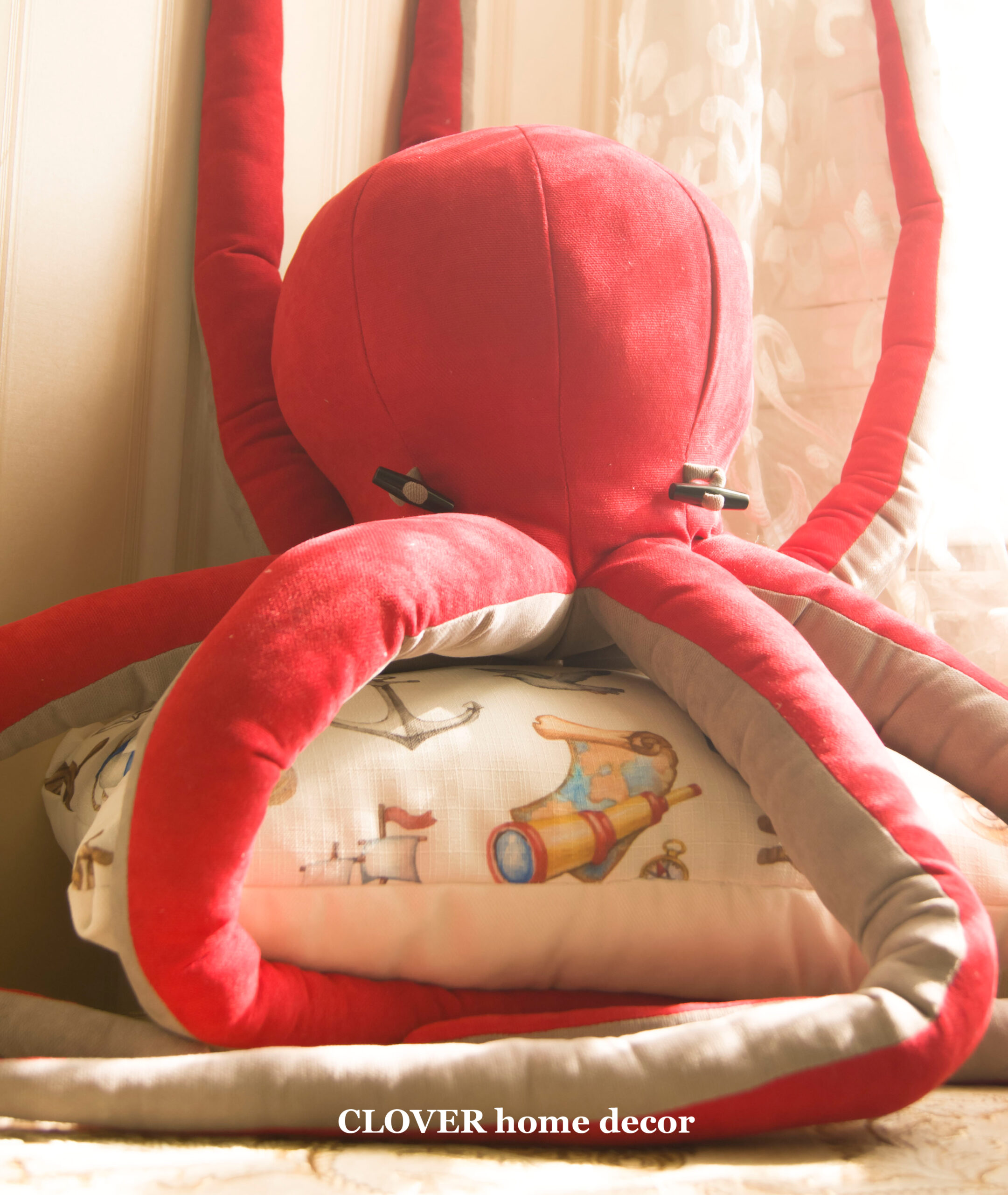 Розкинувши щупальця на дивані, цей морський мешканець нікого не залишить байдужим! Загальна довжина – 90 см а діаметр голови – 30 см. Виготовлений з велюру. Наповнювач – синтепух. Можна «делікатно» прати при температурі 30 градусів.